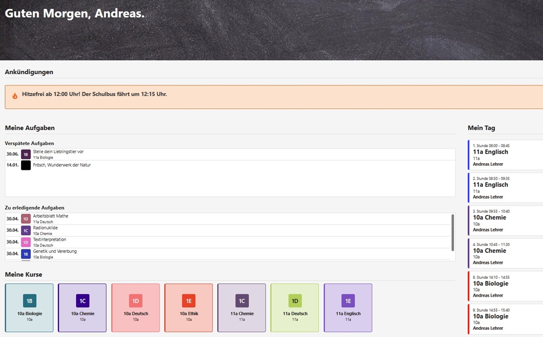 Die Ankündigungsfunktion ermöglicht es Ihnen, wichtige Informationen schnell und effektiv in der Schule bekannt zu geben. Die Nachrichten werden prominent an von Ihnen gewählten Positionen angezeigt und können entweder für alle sichtbar sein oder nur von ausgewählten Personen eingesehen werden (Abb. 54).