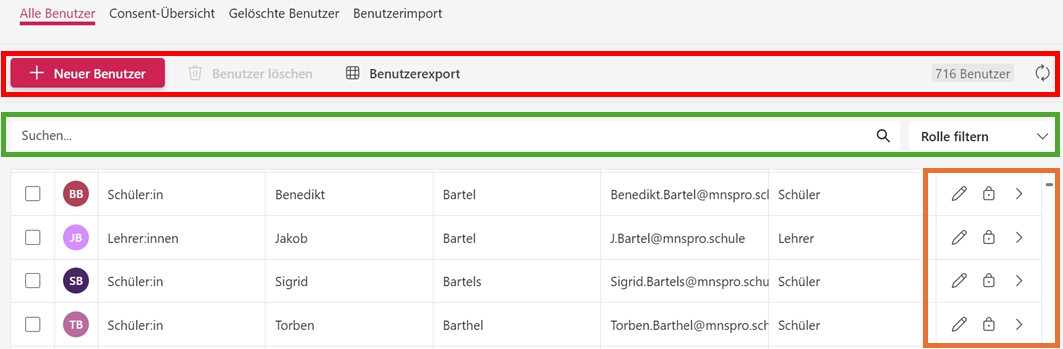 Der einfachste und schnellste Weg, neue Benutzer anzulegen oder zu löschen, ist die manuelle Methode. Dieses Vorgehen empfiehlt sich besonders, wenn während des laufenden Schuljahres neue Schülerinnen oder Schüler sowie Lehrkräfte an die Schule wechseln und für MNSpro registriert werden müssen.