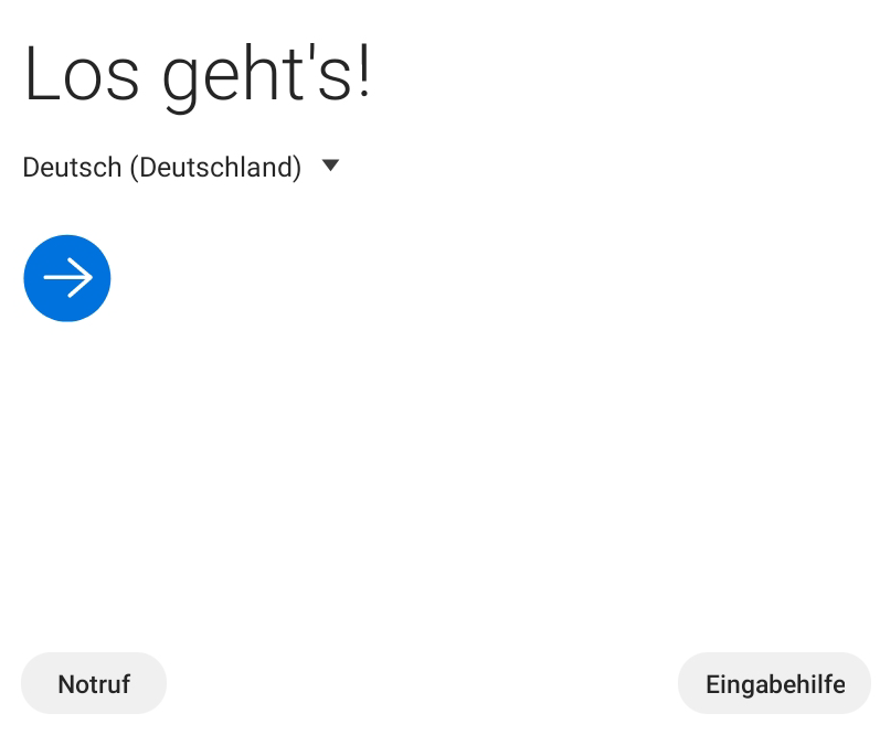 Ein-/ Ausschalter so lange drücken, bis der Bildschirm des Geräts eingeschaltet wird. Warten Sie, bis„Los geht ́s!“ angezeigt wird: