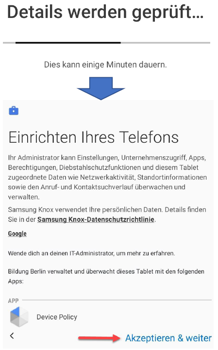 Warten sie, während das Gerät automatisch registriert wird. Beim Punkt „Einrichten Ihres Telefons“ wählen Sie „Akzeptieren & weiter“