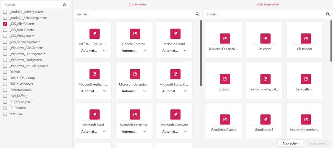 Nun sehen Sie eine Übersicht, in der Sie auf der linken Seite alle Gerätegruppen sehen. Den einzelnen Gerätegruppen sind dabei die jeweiligen Endgeräte zugewiesen. Wenn Sie nun Software auf ein Endgerät ausspielen möchten, müssen Sie daher die entsprechende Gerätegruppe anklicken (siehe Abbildung 43).