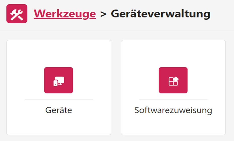 In vorherigen Kapitel haben wir uns bisher mit der Kachel Geräte befasst. Daher zeigen wir Ihnen im Folgenden, wie Sie Software auf ihre Endgeräte aufspielen. Dazu klicken Wie bitte auf die Kachel Softwarezuweisung innerhalb der Geräteverwaltung (vgl. Abbildung 33).