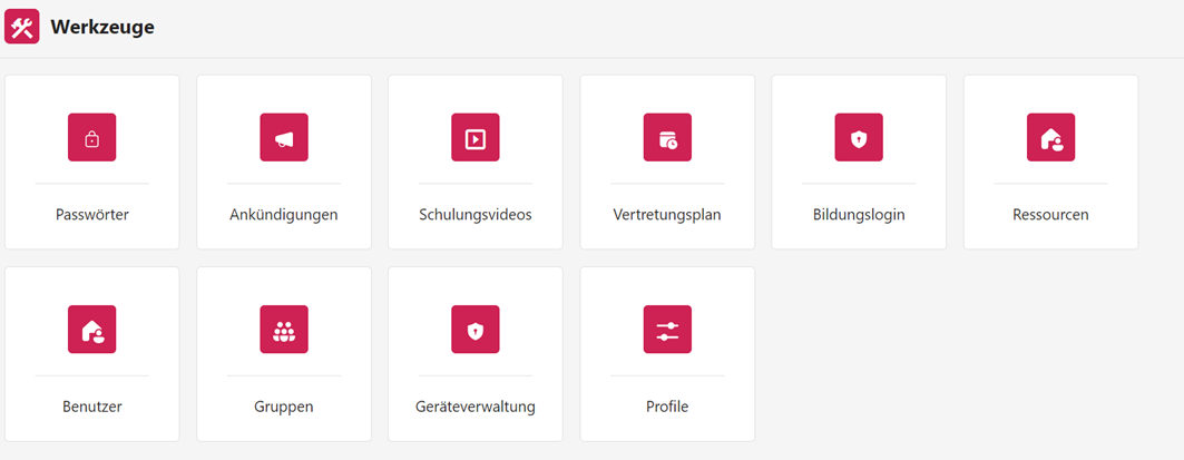 <figure><img src="https://content.gitbook.com/content/eMM10O3xY9lhYI07xrzv/blobs/GnvVVC9hLmVGrd3TVexR/image.png" alt=""><figcaption><p>Abbildung 14. <em>Übersicht der Werkzeuge.</em></p></figcaption></figure>