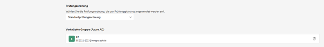 Die Prüfungsordnung wird automatisch übernommen, sodass Sie nurnoch die AD-Gruppe der Stufe verknüpfen müssen (siehe Abbildung 30).