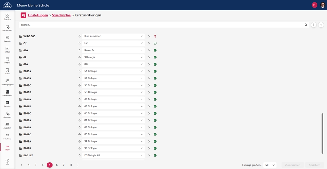 Dazu wechseln Sie wieder im Portal auf den Reiter Einstellungen und wählen anschließend Stundenplan aus. Unter Kurszuordnung können Sie anschließend diese durchführen (siehe Abbildung 27 und 28).