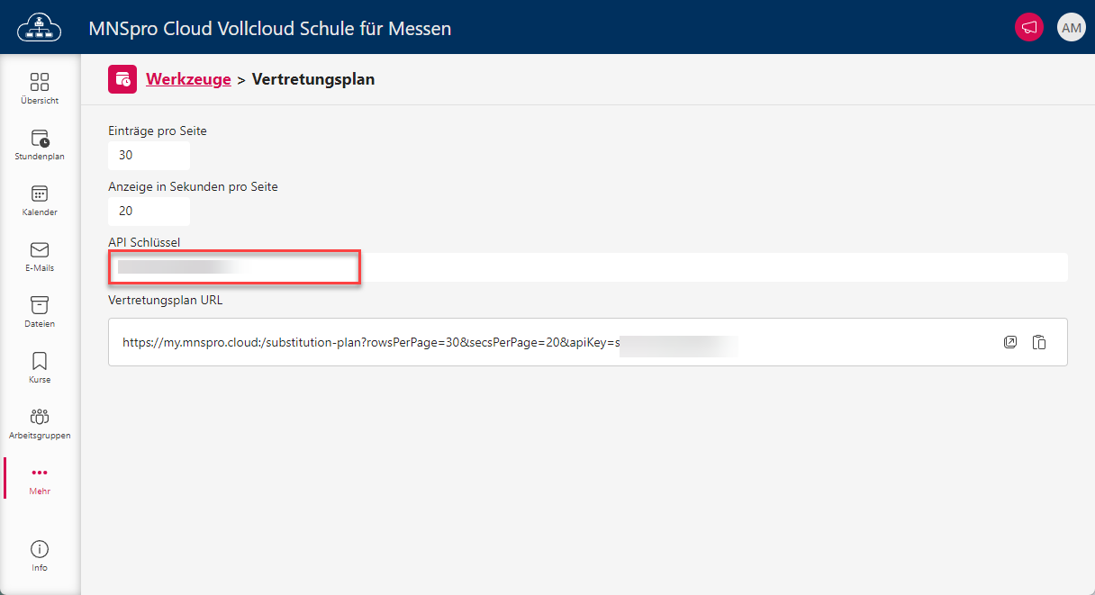 Um den Vertretungsplan aufzurufen oder zu Verteilen, kopieren Sie sich die generierte URL