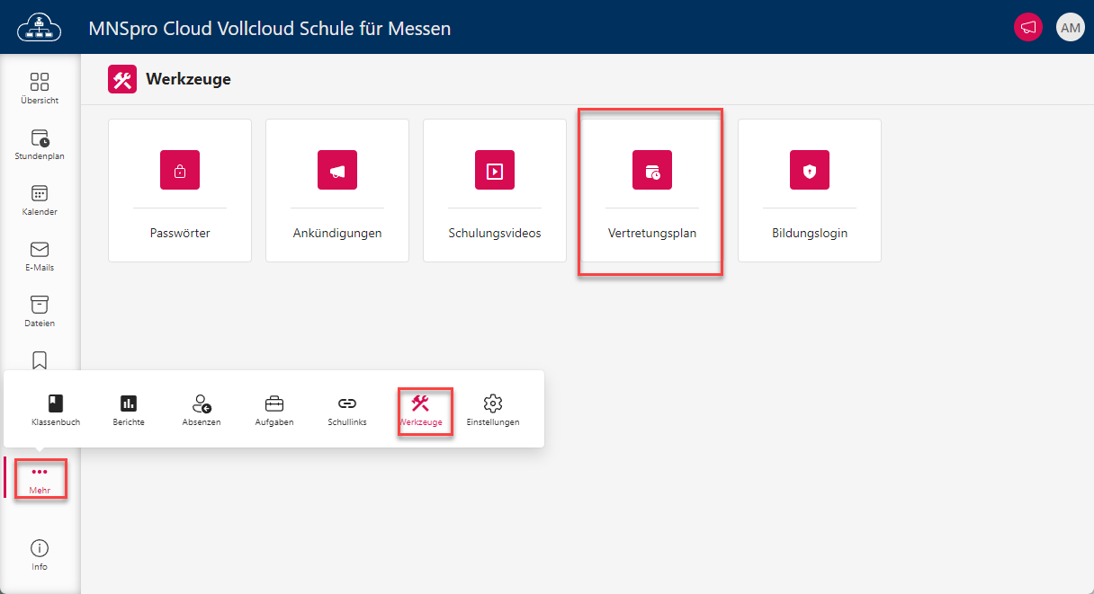 Die Einrichtung des Vertretungsplan finden Sie unter Werkzeuge->Vetretungsplan