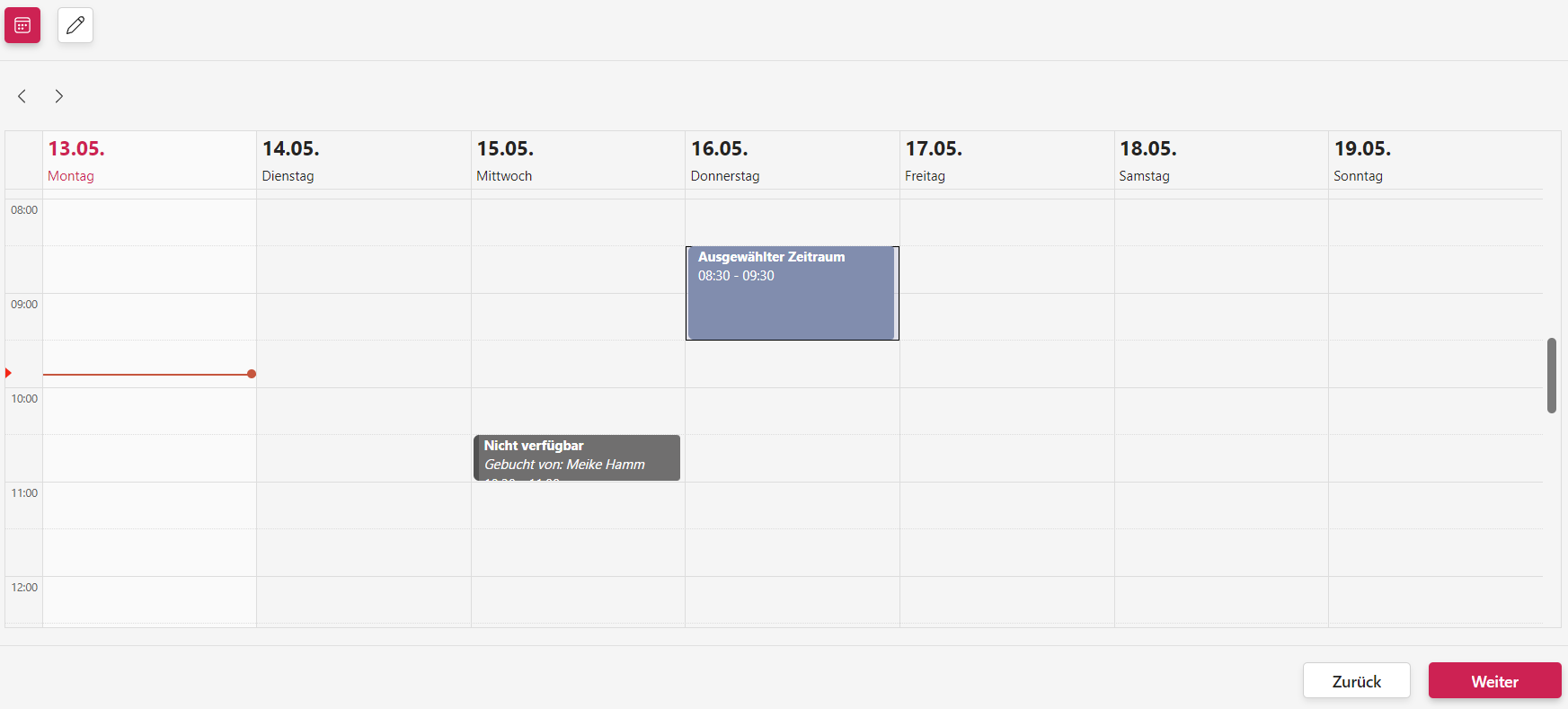 Sie können auch mehrere Ressourcen zeitgleich buchen.