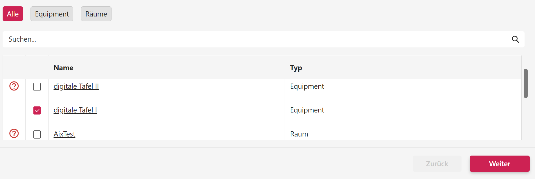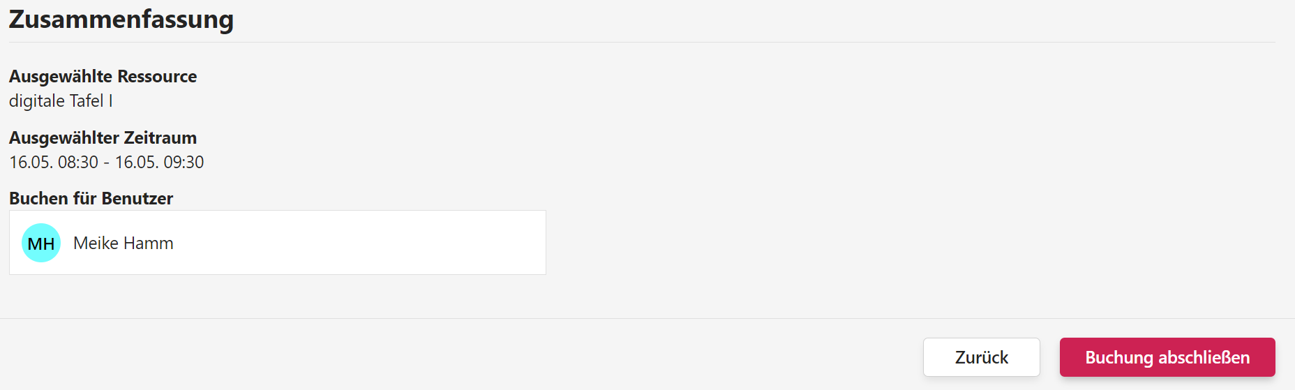 Wichtig: Welche Ressourcen zur Buchung verfügbar sind, wird durch die Administratoren festgelegt.