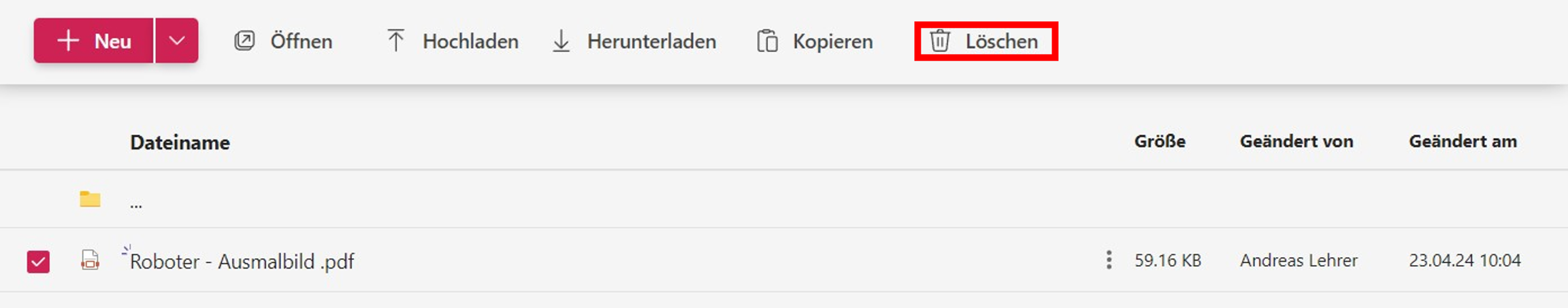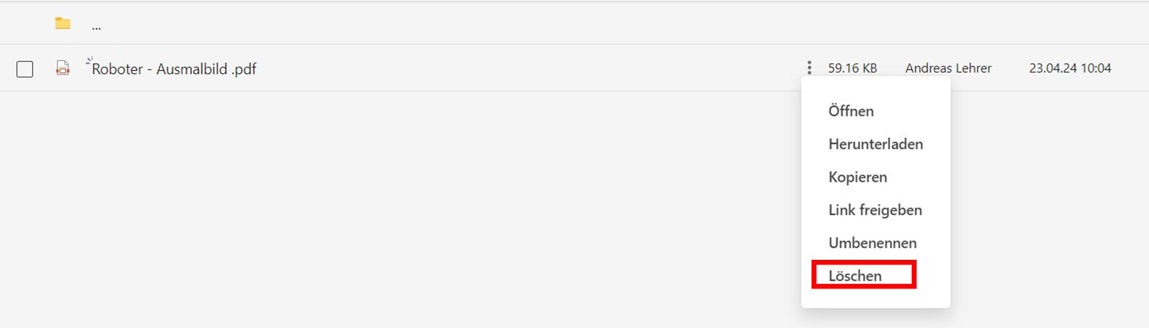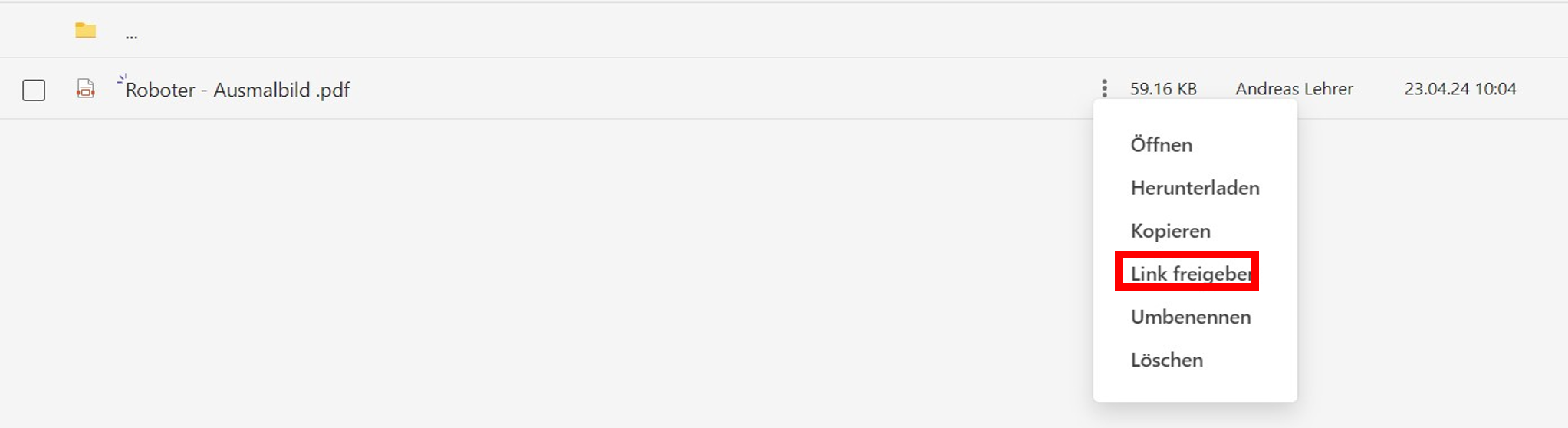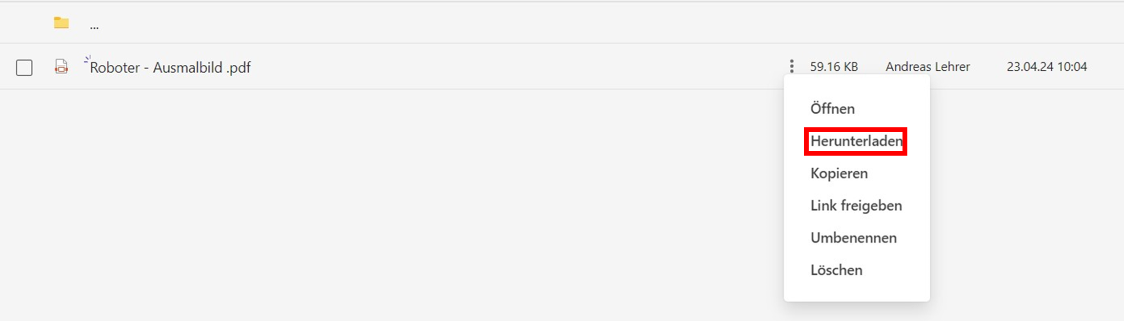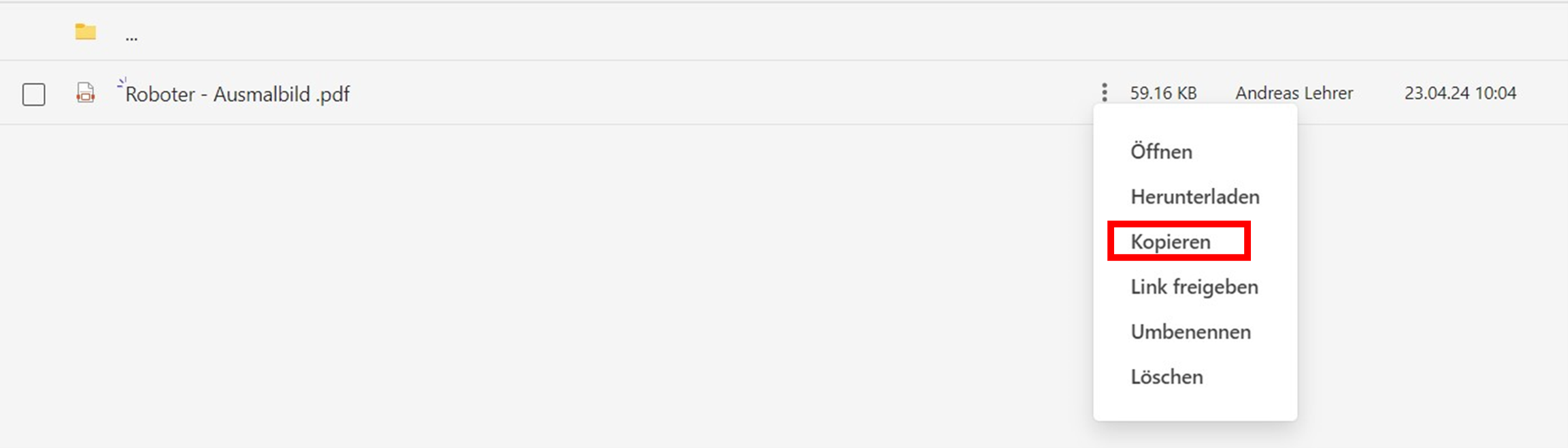 Alternativ dazu können Sie auch anstatt eine neue Datei hochzuladen, eine bereits existierende Datei aus einem anderen Ordner kopieren. Dazu öffnen Sie den Speicherort der Datei, die Sie kopieren möchten, und klicken auf die drei Punkte neben dem Dateinamen (siehe Abb. 29).